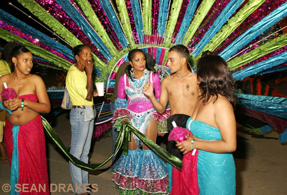 Parading a massive Carnival queen costume requires stamina and strength to manage the towering float that can cost a band producer U$4,000 — U$20,000 to manufacture.  Contestants are in it largely for the glory of personal accomplishment, because winning the National Carnival Commission’s top prize does not guarantee full reimbursement of expenses.  Tamara Alleyne-Gittens (above) as A Splash of Scandal.