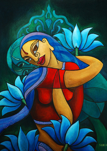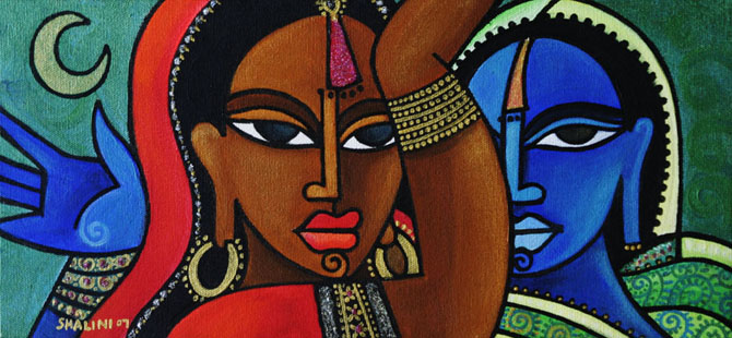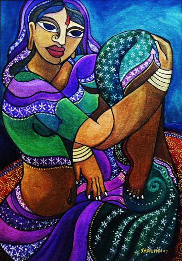Two years ago Shalini noticed her work started to reflect her East Indian heritage. “My subjects are not entirely distinguished as Indian or African, at first. I started to paint people not regarding ethnicity as much All of a sudden the fine detailing that I like started to creep out of me; and I [became] more exposed to fabrics and colors of the Indian culture,” She explains. “That’s where I am in 2007 with my process.”